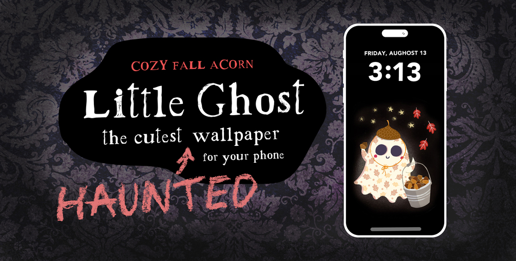 Little Ghost Wallpaper - Cozy Fall Acorn - Illustrated Phone Background